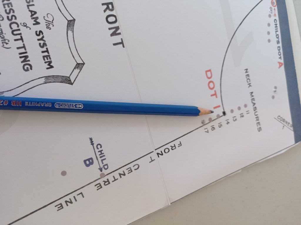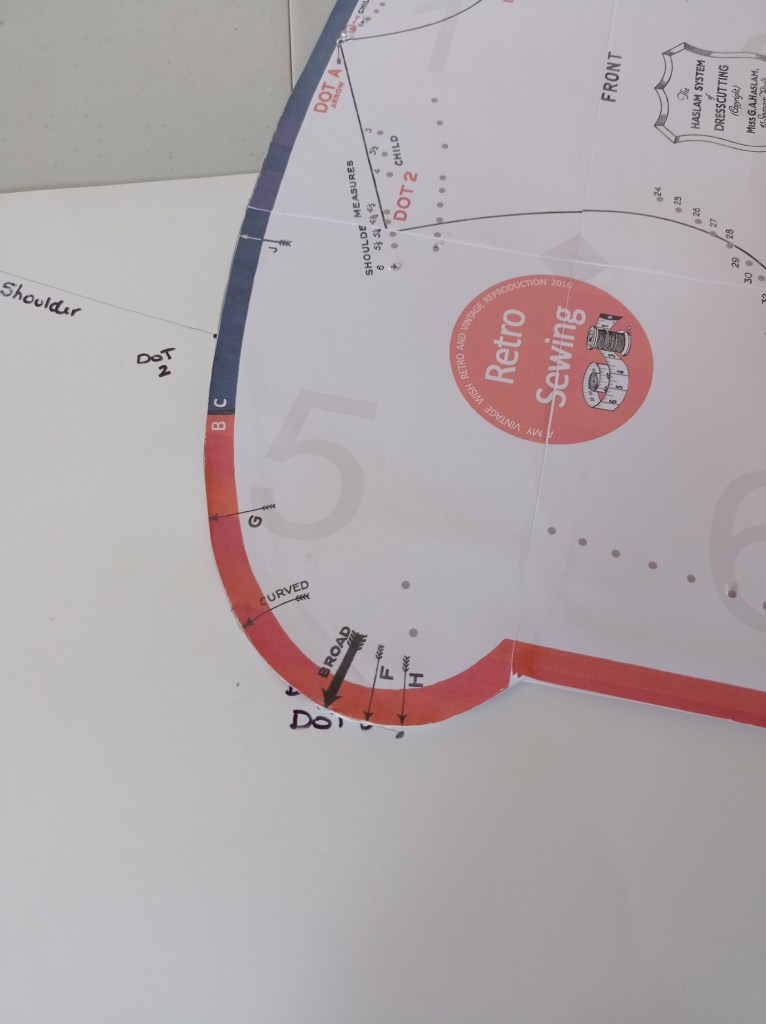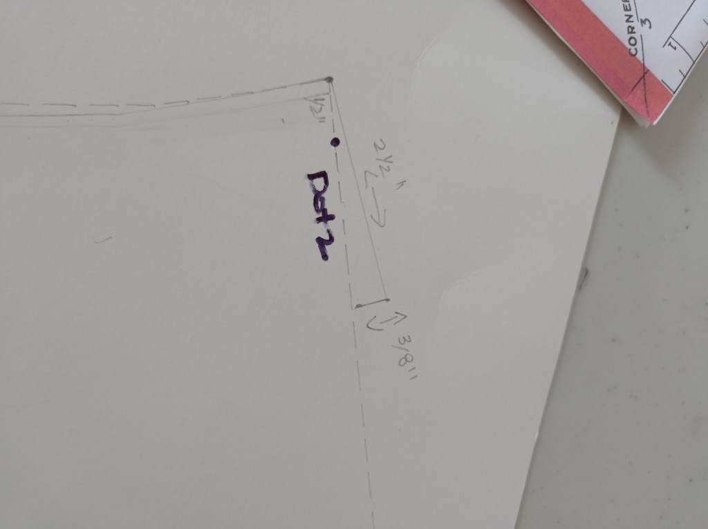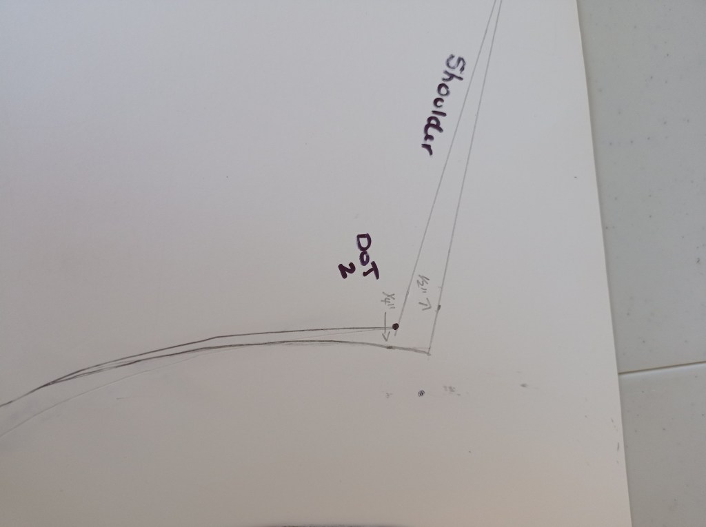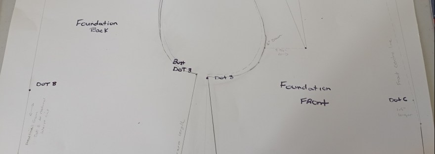 Shoulder dart, follow the measurements on the Diagram. (Foundation Draftings with Instructions). Do the same for the final neck measurement.