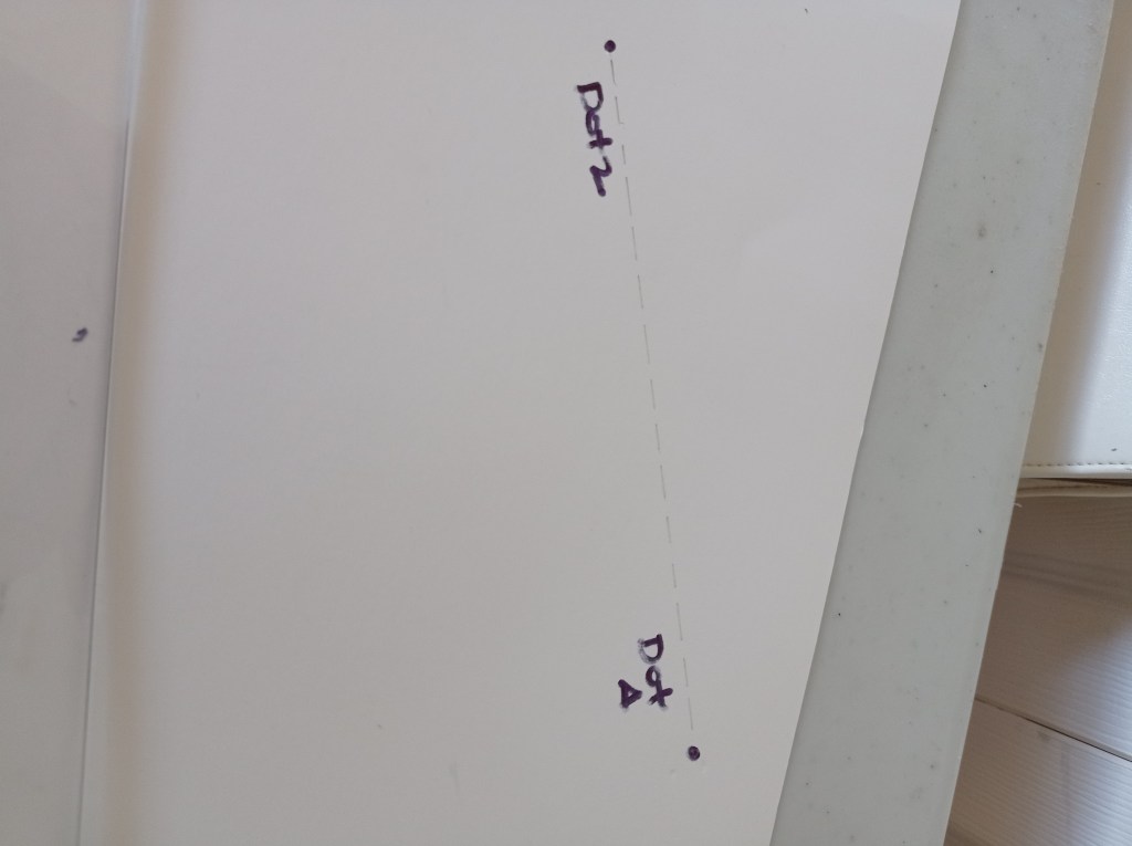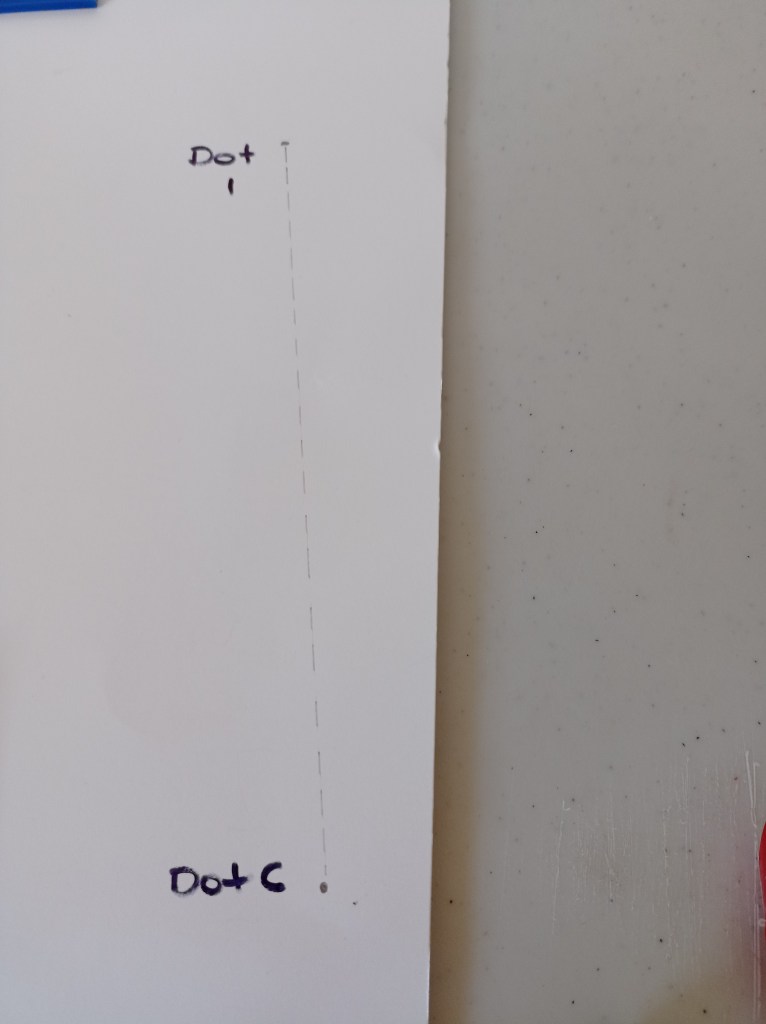Draw a dotted line from Dot 1 to Dot B (or C – if Dot C the line must be continued for 1 1/2″ longer). Then draw a straight line to the required length. This is the Front Centre Line.