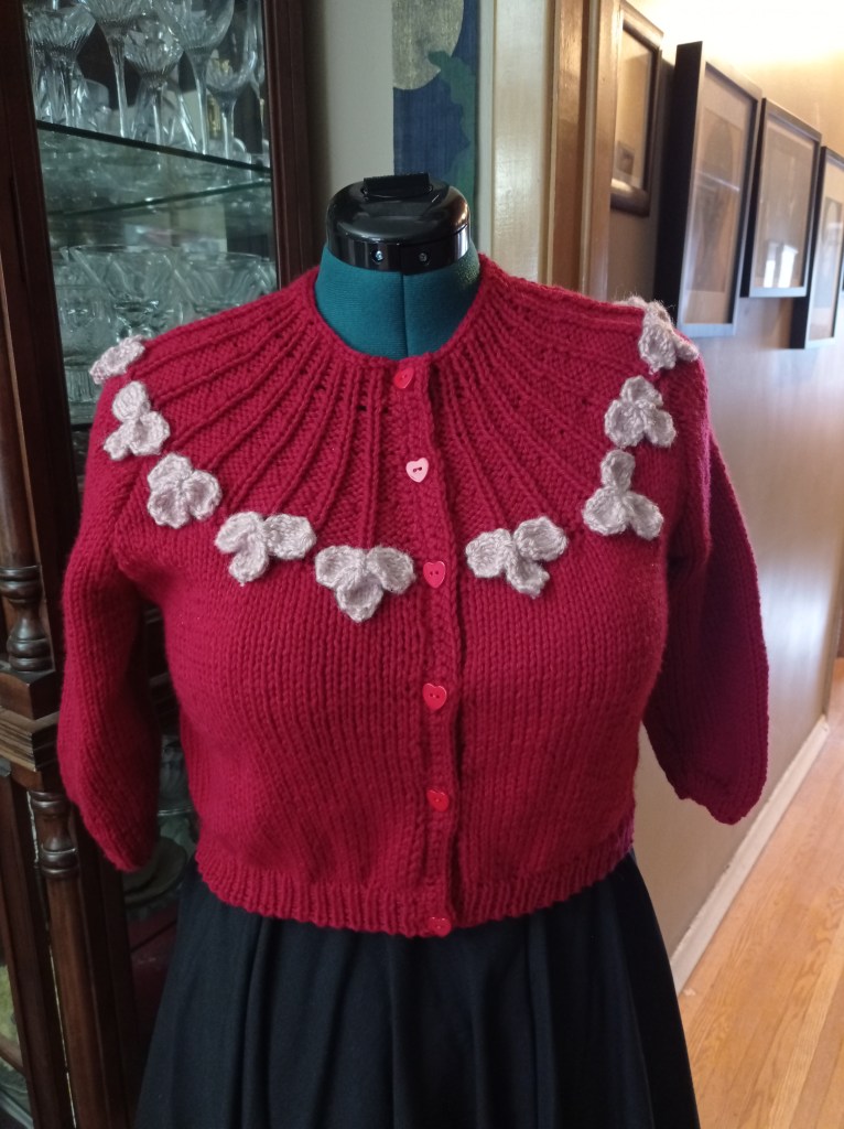 I now have two versions of The Nicest Bad Girl Cropped Cardigan for sale in my Etsy store! I will have a few more colour combinations coming, but I wanted to get these ones up now, as they will be perfect for your Valentine’s outfit!