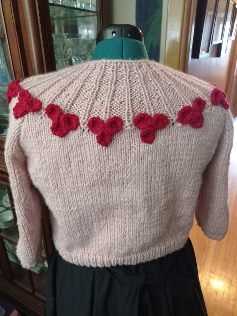 The Nicest Bad Girl Cropped Cardigan name was inspired by my friend Heather aka Blue Suede Sue (you will find her over on Instagram) and the nicest bad girls from the b-movies of the 1950s. These nice bad girls could be sweet as pie, but you sure wouldn’t want to make them mad! This cardigan is handknit by me, from an original 1950s pattern.