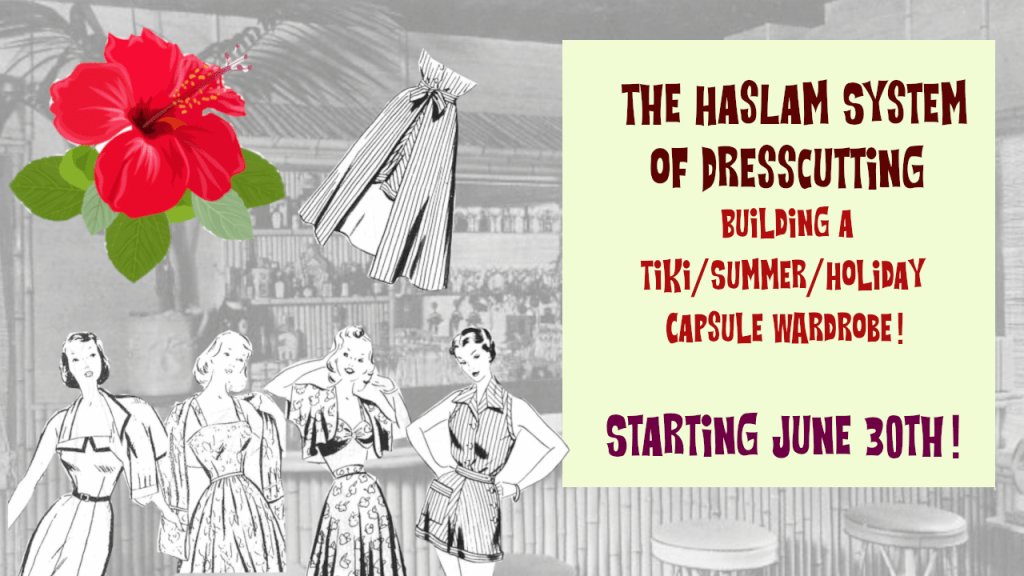 In this series, we will build a Tiki/Summer/Holiday Capsule Wardrobe with the Haslam System of Dresscutting. Each piece we create will be a basic garment that you can customize to your heart’s desire. I will be giving you some ideas on how to do that in the tutorials!